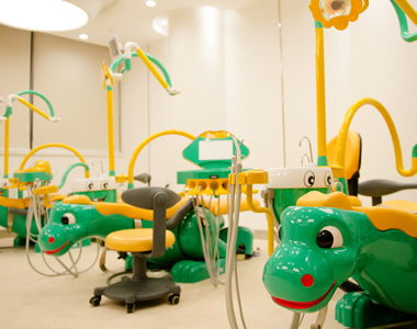 为儿童提供独立舒适童趣的专属诊室及游乐园,消除孩子们看牙的恐惧心理。